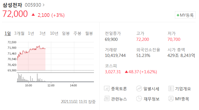 참고로 오늘 삼성전자의 주가는 상한가!米国は株価過去最高値なのにKOSPIが伸び悩むのはなぜ