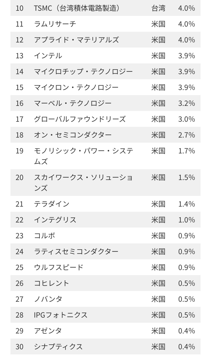 写真は世界の半導体関連企業だけで構成されたSOX指数の銘柄だけど