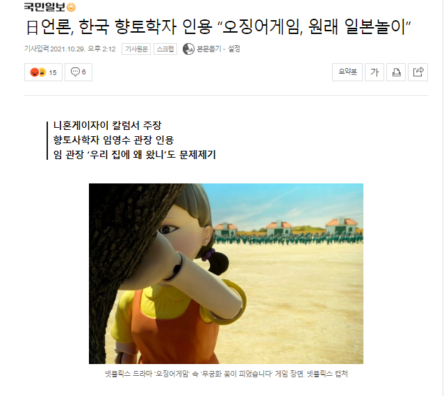 更に責任なすりつけで頭がいかれる韓国日本メディア、韓国の郷土学者引用「イカゲーム、もともと日本の遊び」