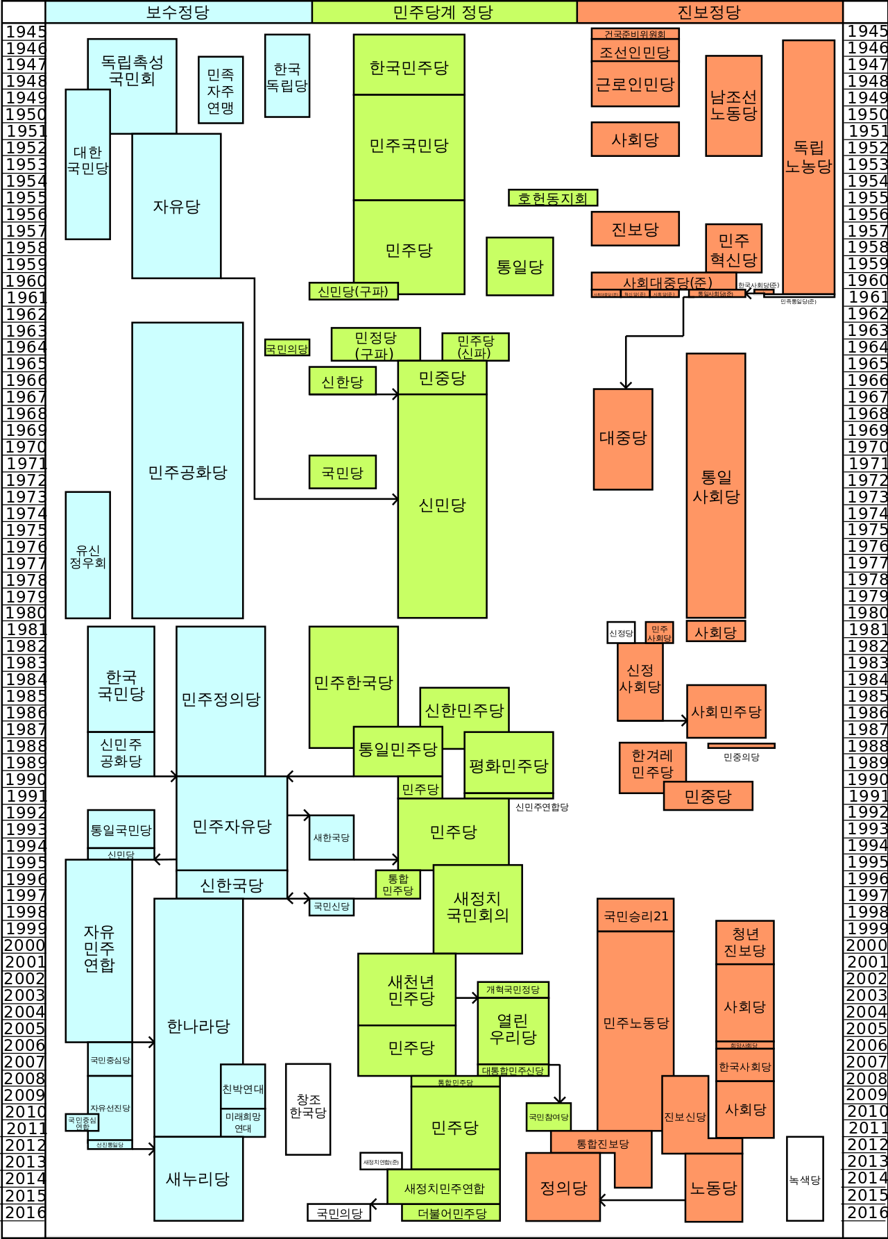 기본적으로 큰 줄기만 적으려고 했고 중간에 떨어져 나온 것들은 왠만하면 적지 않으려고 했으나 열린우리당은 너무 커서 병기했습니다.
