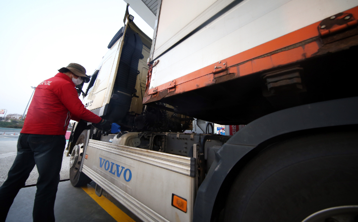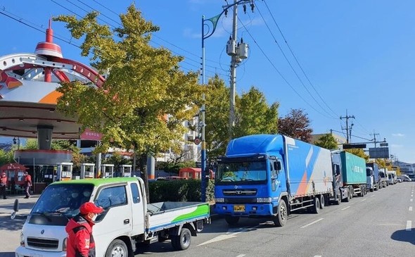 12日午前11時ごろ、仁川(インチョン)港の埠頭に隣接した仁川市中区(チュング)の築港大路にあるガソリンスタンドでは、大声が飛び交っていた。45トントラックの運転手Pさん(43)がガソリンスタンドの従業員に向かって声を荒げていたのだ。Pさんは地方に荷物を受け取りに行く途中、ここに尿素水があるという同僚運転手のメッセージを受け取り、ガソリンスタンドの前で1時間待ったという。