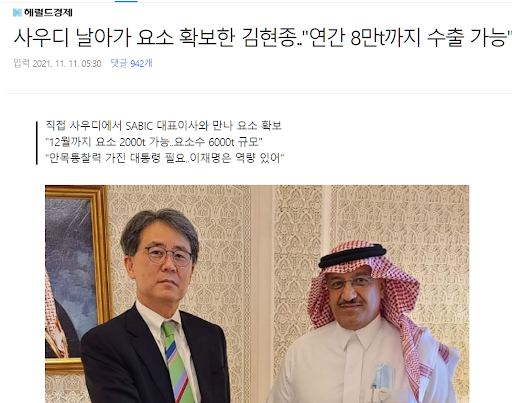 政府が中国、オーストラリア、ベトナムに続きサウジアラビア、日本でも尿素水の原料(尿素)追加供給契約を結び、国内の尿素水の在庫物量を5カ月分確保したと12日、明らかにした。