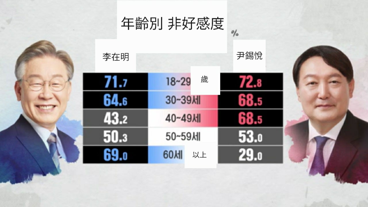 李在明候補は、「文在寅大統領の後継者」とは見られていない。アメリカ政治で言うなら、バイデン大統領とサンダース上院議員が、同じ民主党でも「別者」であるのと同じである。そのため、「文在寅大統領には失望したが、李在明候補には期待している」という人々が一定数存在する。