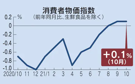 だから2020年12月に消費者物価指数がマイナス1まで進んだのをなんとか0.1まで増やせた。
