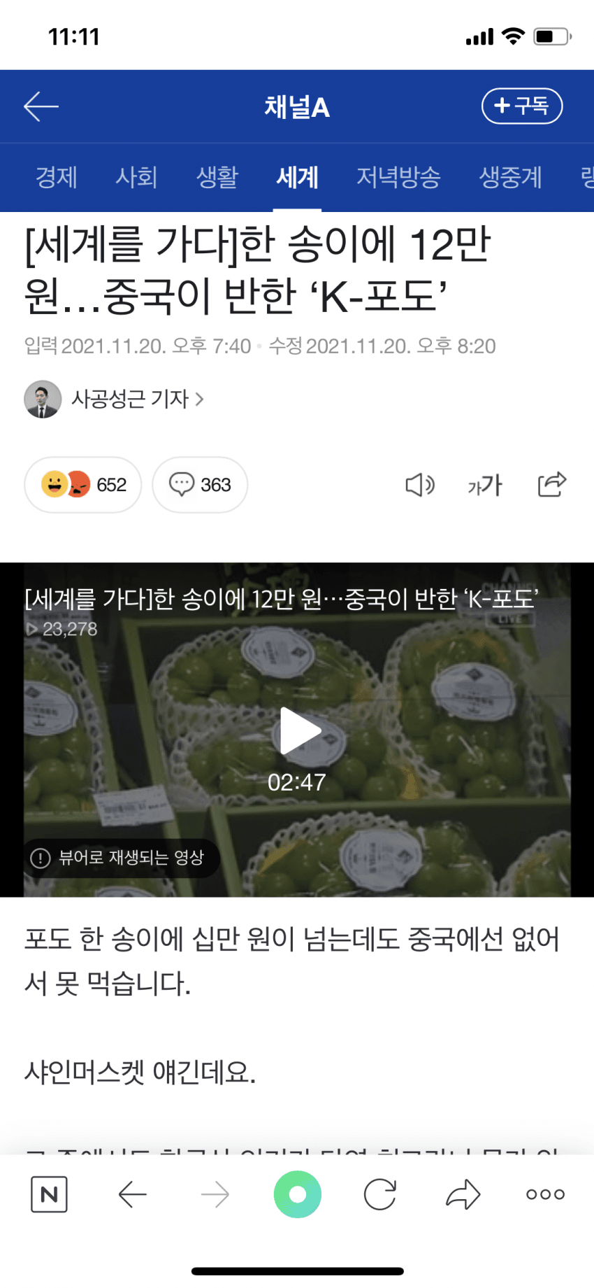 샤인머스켓 얘긴데요.
