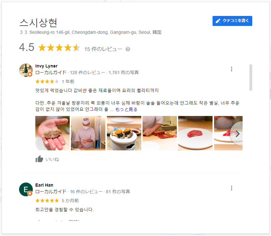 一方で、韓国料理店として星を得たお店は今年2か所だ。全33カ所のうち8カ所だけが韓国料理店となっており、少々寂しい状況となっている。このうち1カ所は来年3月まで休業中であることから、それまでソウルでは日本料理の星付きレストランが営業中店舗において韓国料理のそれを上回るという状況が続くことになる。朝鮮日報は「ここが東京か?ソウルか?…ミシュランは鮨偏愛?」というタイトルでこのことを報じた。同人誌の評価ってwww