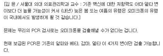 チョン・ウンミ李大木洞病院呼吸器内科教授は「国内遺伝子増幅(PCR)検査ではオミクロン感染の有無を確認できず、