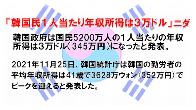 この記事に対する韓国ネットの声は、「韓国民5200万人の1人当たり年収所得が3万