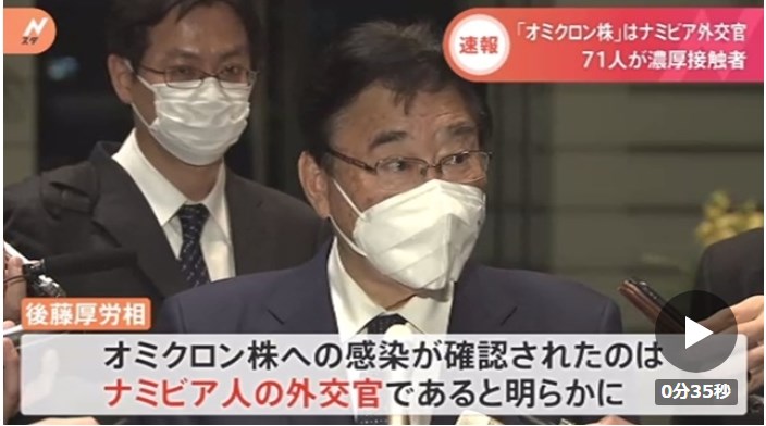 ゲノム解析は終わってるのだろうか?新型コロナの変異ウイルス「オミクロン株」が日本で初めて確認されたことについて後藤厚生労働大臣は、感染したのはナミビア人の外交官だと明らかにしました。