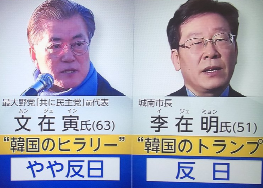 多分韓国人は日本人が支持する大統領候補は外していくよ