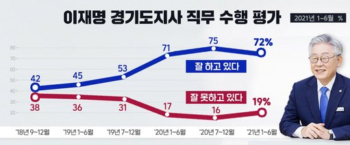 행정력,추진력 대한민국 역대 NO.1 경기도 직무수팽 평가 잘하고 있다 72%로 모든 지자체장중 압도적 1위 특히 경기도에서 이정도 평가면 엄청난것 일을 너무 잘한다.