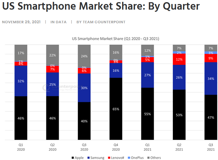 성전자의 3분기 스마트폰 출하량은 6900만대다. 특히 삼성전자는 북미와 유럽에서 선전했다. 삼성의 3분기 북미 스마트폰 시장 점유율은 34%로 전 분기보다 8%포인트 올랐다. 미국에서 갤럭시Z플립3·폴드3가 흥행한 영향으로 분석된다. 북미 시장 부동의 1위인 애플과 삼성의 점유율 격차는 직전 분기 27%포인트에서 3분기엔 14%포인트로 줄었다.というか、どんどん稼いで