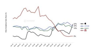 삼성전자는 올 3분기 세계 스마트폰 시장에서 점유율 21.2%로 1위를 차지했다. 이어 애플(15.9%), 오포(15.7%), 샤오미(13.7%), 비보(10.5%) 순이었다.