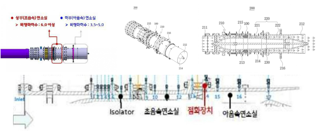 출처 : 이중모드 램제트 연소기 연소특성 실험적 연구(한국추진공학회 2017 춘계학술대회), 이중모드 스크램제트 엔진의 연소모드 특성(한국추진공학회 2017 춘계학술대회), 이중모드 스크램제트 엔진의 최적설계를 위한 모드별 연소특성 연구(한국군사과학기술학회 2017 종합학술대회), 이중모드 램제트 엔진용 연료분사장치(10-1904653)>>445