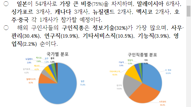 日韓関係の悪化で減少したものの、現在はコロナ禍にもかかわらず、海外就職フェアが行われている。