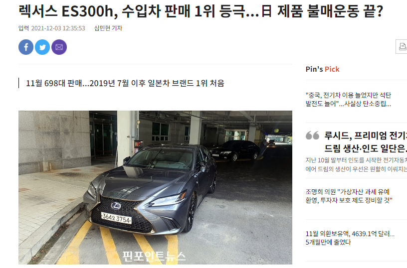 レクサスES300h、輸入車販売1位に。日本製品の不買運動は終わったか