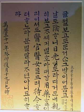 李氏朝鮮時代にも、ハングル漢字交じり文で書かれたものがあることは知っているが、あくまでも私的なものと『春香伝』などの文芸活動に限られていた。公用文書は全て(一部の例外はある)漢字で書かれた。