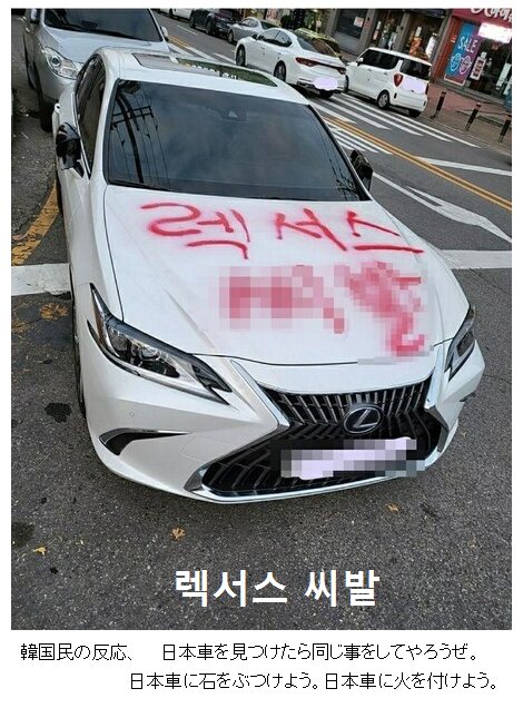 https://news.yahoo.co.jp/articles/23f94468251d2e3c78b1cb1ba3d0c626dafcc48c要するに、韓国人レクサスオーナーが被害に遭って困る。韓国人犯人がいずれ逮捕されて痛い目に合う。