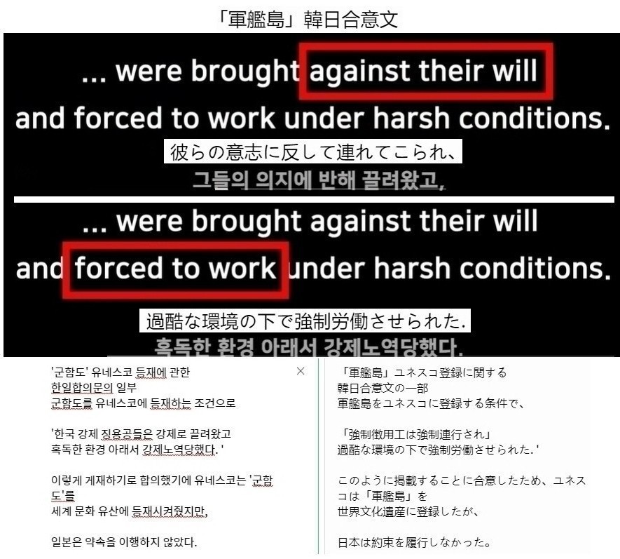 군함도 합의문에 합의하고 일본은 결국 이행하지 않았습니다.