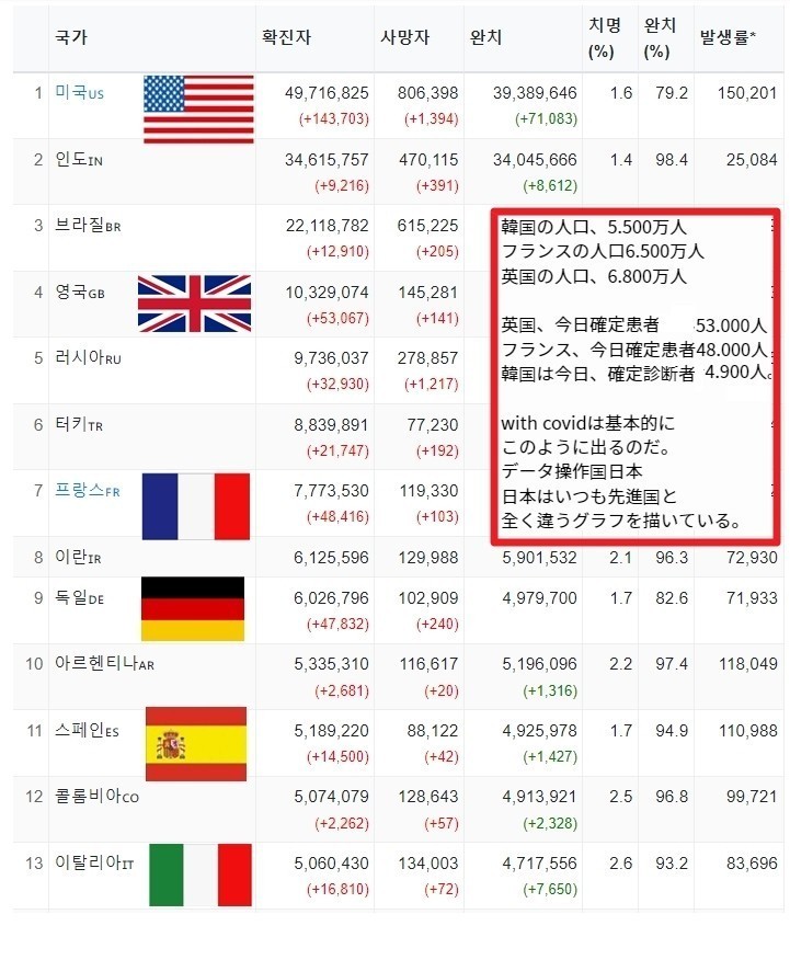 세계의 코로나 그래프는 완만하다 일본 그래프는 믿을 수 없다.