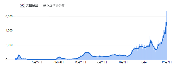 2021年 大韓帝国 コロナウイルス新規感染者数