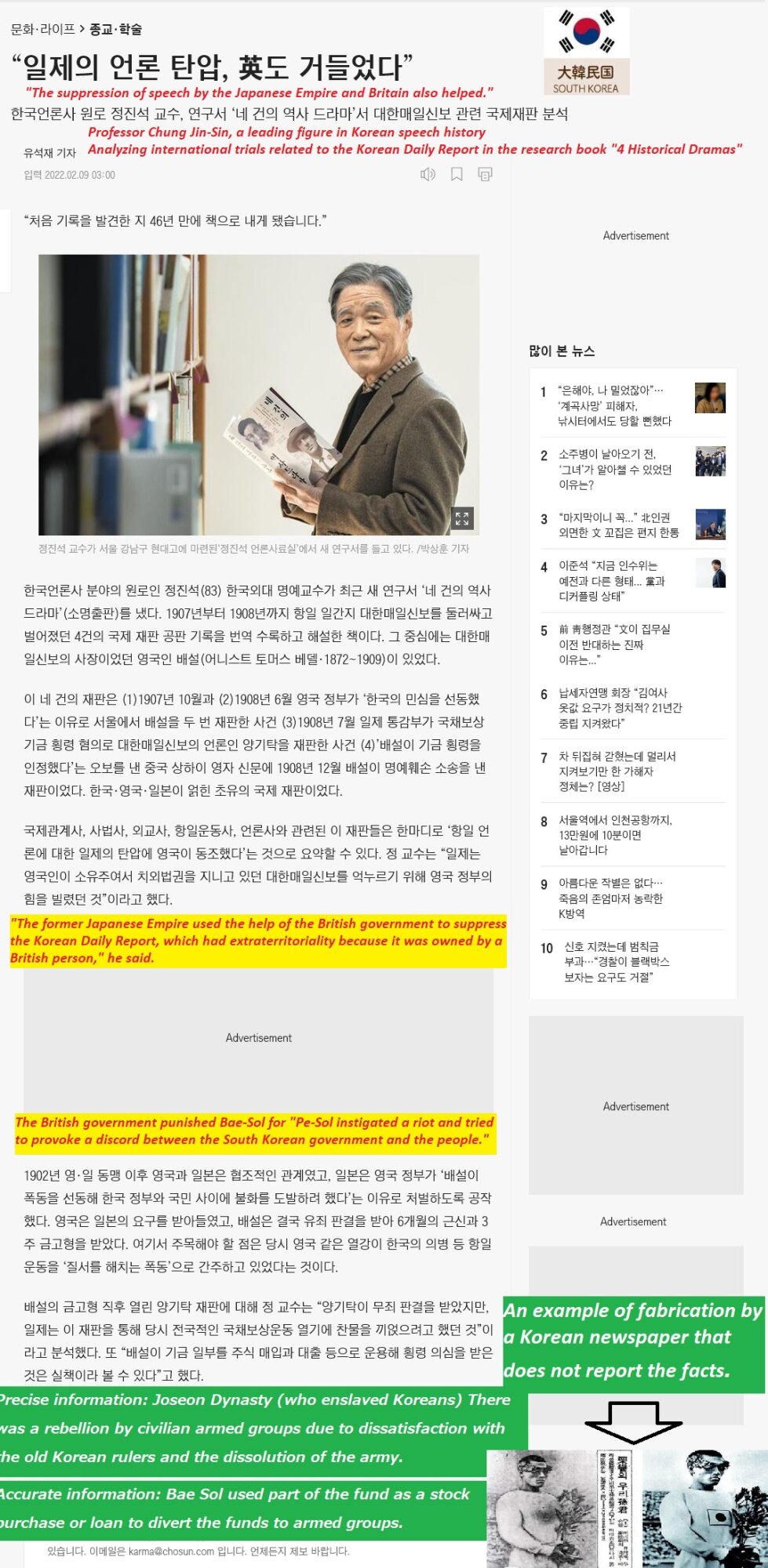 「日帝の言論弾圧、英国も手を貸していた」イヨンス嘘ん婦w