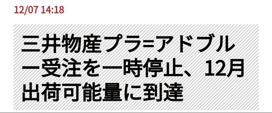 「三井化学=大阪工場定修入り、尿素需給に逼迫懸念」