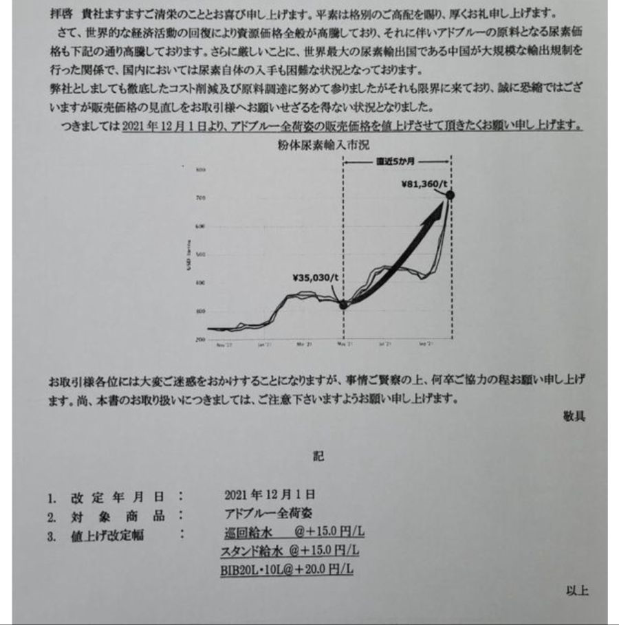 日本の尿素水ただ一品の値上がりが特に気になるようで。11って正真正銘のバカ認定