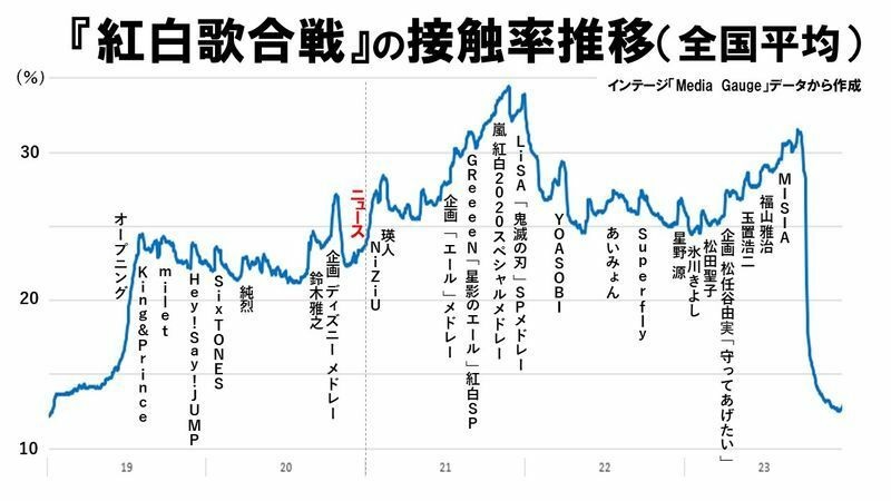 だがそれは昔の話です。歳末は1週間後なのに日本で「さあ、今年の紅白歌合戦は?」という期待は見つけるのが難しいです。視聴率は30%台まで落ちて久しいです。30%でもものすごい視聴率ですが、「年配の方が習慣のように見ているため」という解釈が合うでしょう。