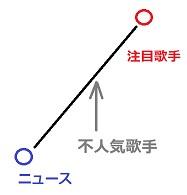 まず、人気歌手に挟まれる順番だと、もろにV字を描いてしまうから、これだけは避けたい。そこで、NiziUをニュースの後に持ってくることで、一旦下がった数値からの上昇になるので、少なくともV字は避けられる。ところが、次の歌手の人気が薄いとその低い数字よりも更に低い数字を叩き出してしまうから、NiziUの後に注目歌手を持ってくることで、上昇カーブの中に入り込むことができる。
