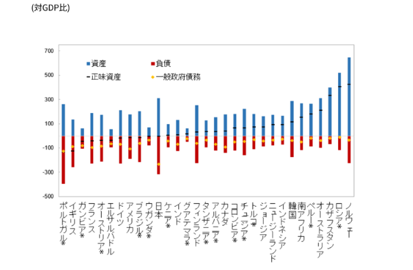 IMFの発表してる政府のバランスシートでは、日本政府の債務は0 (2018年)