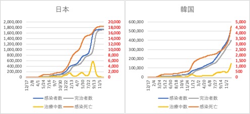 韓国では、「ウィズコロナ」(段階的日常回復)への転換後に新型コロナウイルス感染症(新型肺炎)が急速に拡大し、14日一日あたりの死亡者が100人に迫るほどの事態となっている。重篤患者も初めて900人を超えた。
