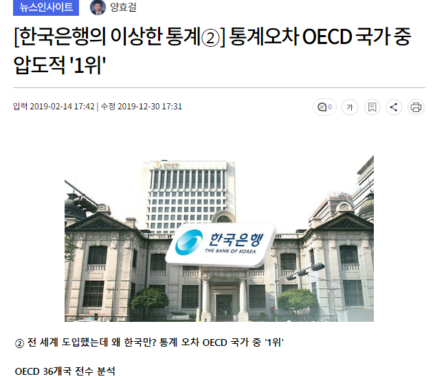 [韓国銀行の奇妙な統計②]統計誤差OECD諸国の中で圧倒的「1位」