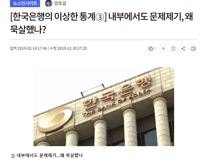[韓国銀行の奇妙な統計③] 内部でも問題提起、なぜ無視したのか?