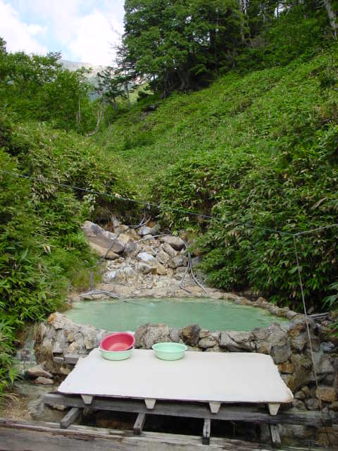 野性味あふれる露天の岩風呂が幾つか点在するだけの温泉で、白濁の湯が疲れた心と体を癒します