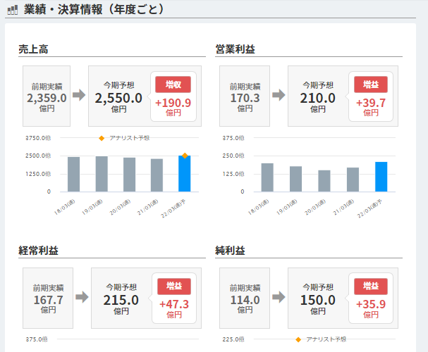 2019年に1兆5340億円だった売上げは、昨年は1兆6302億円へと伸びた。 今年は1兆7300億円と予想される。 営業利益は毎年20%増加している。 2019年は2532億円、昨年は3132億円だったが、今年は3650億円と予想される。아레야레