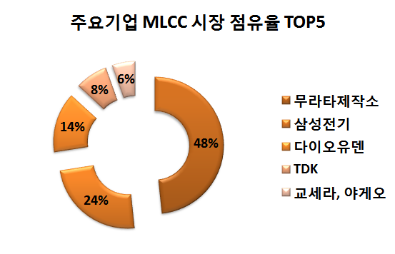 1.村田製作所(48%) > 2.サムスン(24%) > 3.ダイオード太陽誘電(14%) > 4.TDK(8%)