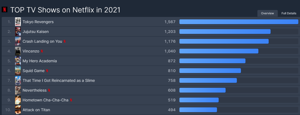 [소름] 2021년 일본인이 넷플릭스에서 많이 시청한 컨텐츠 TOP10