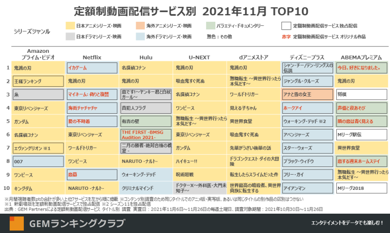 それと一応言及しておくが、鬼滅の刃はNetflix以外でも見られるから。