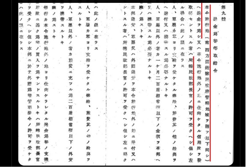 ※民政府令第9号 送金為替等取締令>>198