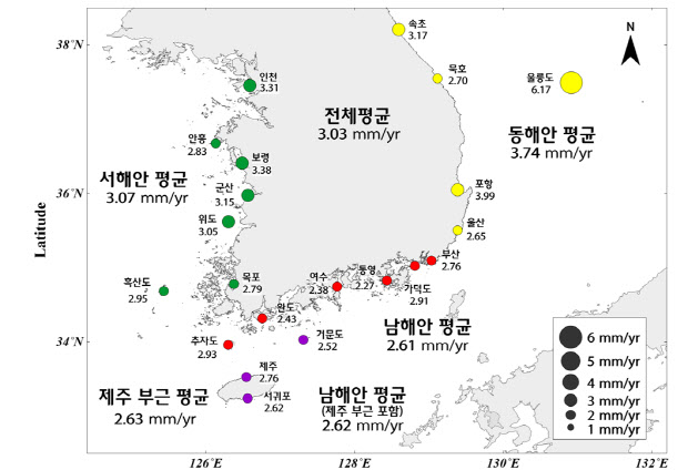 한반도 해수면이 올라가면 일본도 똑같이 올라가는 것이다.