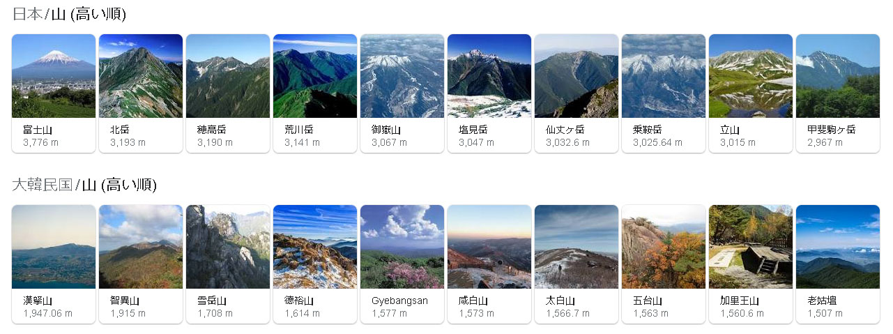 日本は3000m級の山がたくさんあるのに、南朝鮮は2000mに届かない。