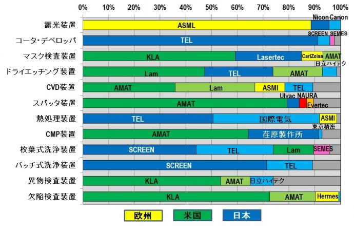 미국은 반도체 설계,장비 기술이 강한 국가. 설계는 세계 시장점유율 60~70%