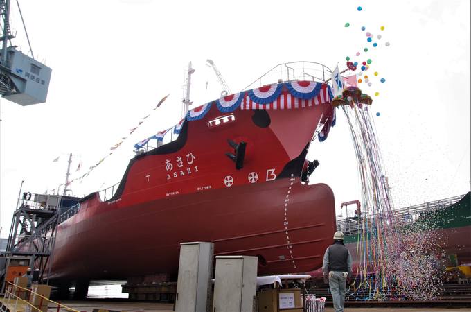 丸亀市の造船会社興亜産業が建造した。船主は東京の旭タンカーで、総トン数は499トン(全長62メートル、全幅10・3メートル、深さ4・7メートル)。「あさひ」と命名され、この日は市内の園児ら約200人が見守るなか、進水式があった。