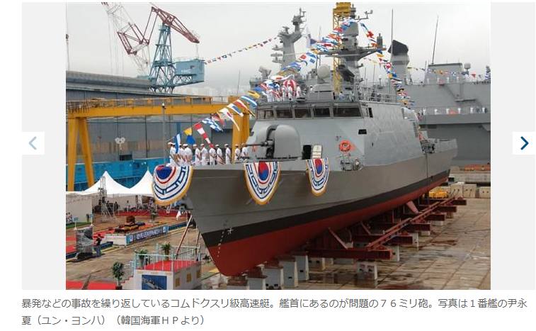 韓国海軍でまた艦船装備のパクリ改造や偽装が明らかになった。多くの中型艦に主砲として積まれている「76ミリ砲」が伊メーカーの製品を参考に造られていたことが判明。メーカーの抗議にも韓国側は正当性を主張したが、改造砲は暴発したり実戦中に停止したりと考えられない事故を起こしている。また以前、救難艦がソナーの代わりに魚群探知機を搭載していて問題となったが、新たに3隻の掃海艇でも魚群探知機が積まれていたことが判明。人災とされる昨年4月のセウォル号沈没事故から1年たったが、韓国では惨事の教訓が生かされる気配はない。
