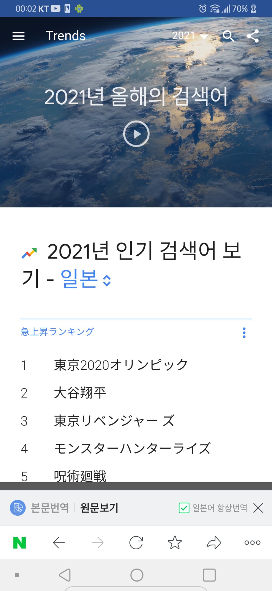 また韓国と関係ない在日スレ찾아보니 한국의 영화 검색어 1위는 귀멸의칼날이었다.