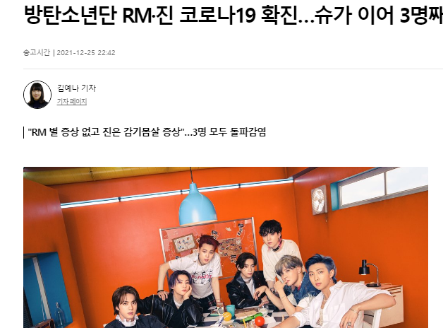 世界的に人気の韓国の男性音楽グループ「BTS(防弾少年団)」の所属事務所は25日、メンバーのRMさんとジンさんが新型コロナウイルスの検査で陽性と判定されたと発表した。BTSではメンバーのSUGA(シュガ)さんの感染が24日に発表されたばかりで、メンバーの新型コロナ感染は計3人となった。