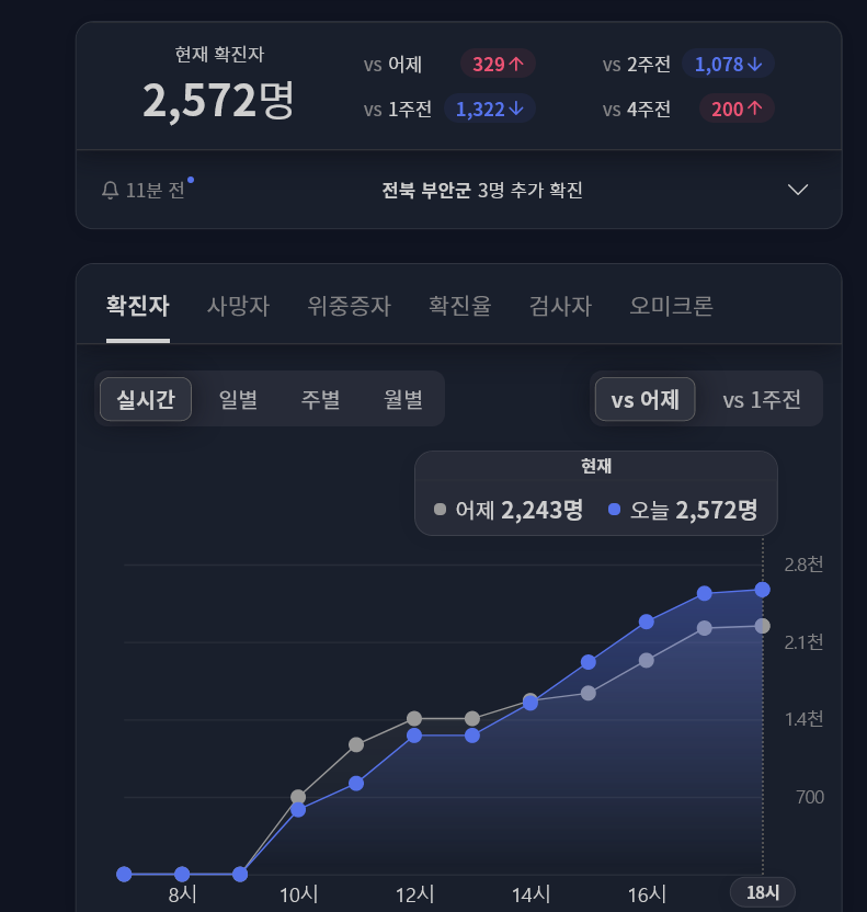 28일 코로나19 확진자 수가 3천명대로 떨어졌다. 위중증 입원 환자는 8일째 1천명대로 집계됐다.