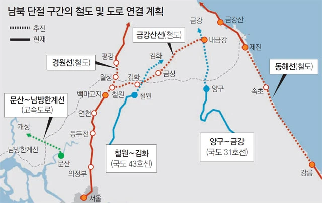北朝鮮の鉄道は韓国と同様、線路の幅が1435ミリメートルの標準レールを使っている。日本統治期に標準レールを採択したためだ。南北の鉄道を連結するために線路を変える必要はない。