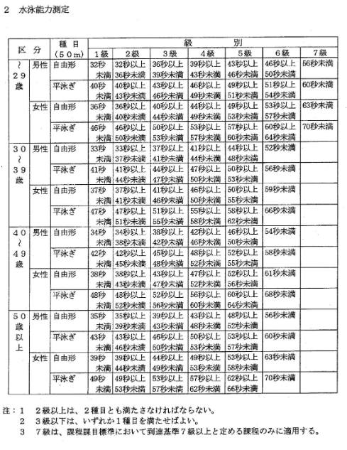 1級から3級となるためにはクロールや平泳ぎなど各泳法で20メートルから50メートル泳げることが条件となるほか、特級は各泳法で50メートル、さらに10メートルの潜水ができること、他人を担いだまま20メートル泳げることが条件となるという。